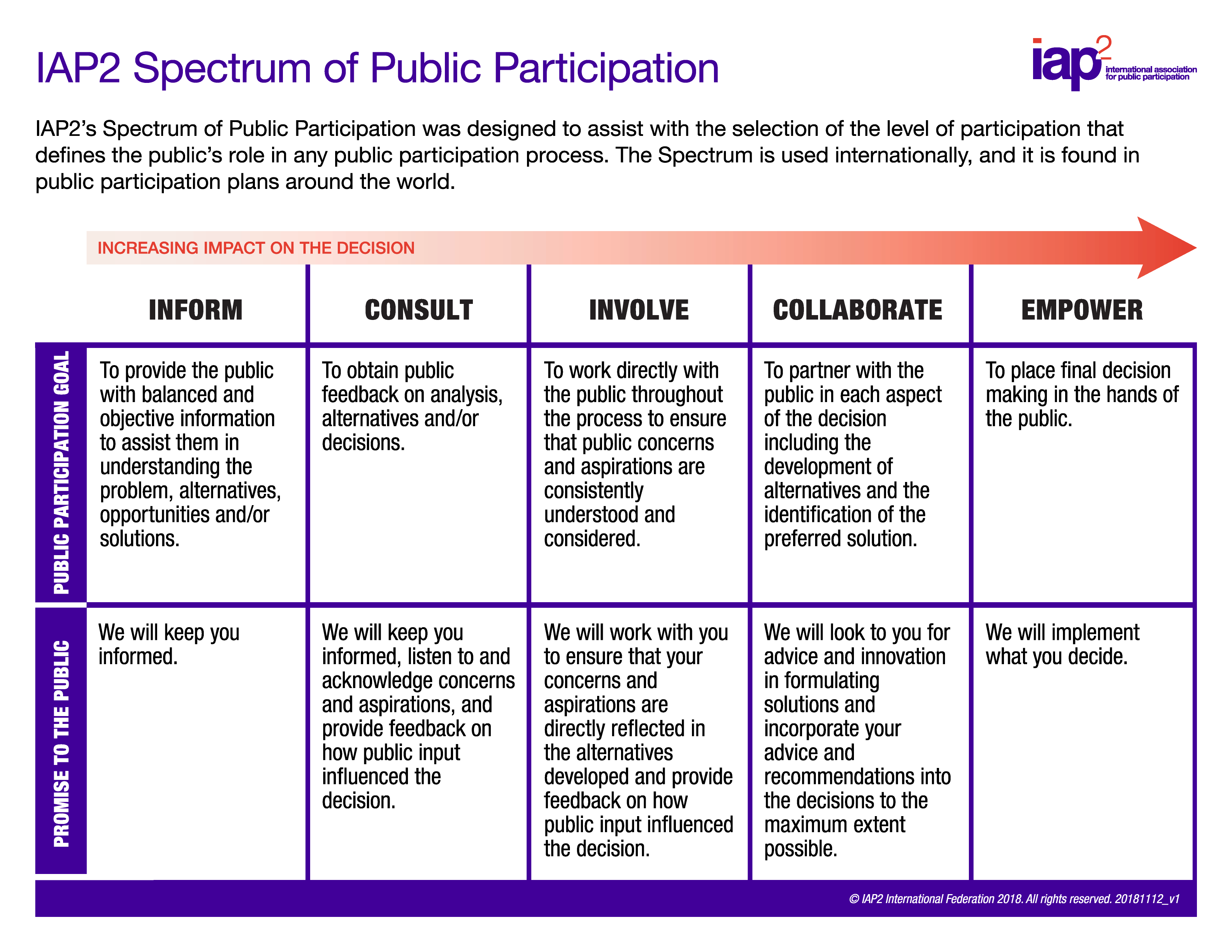 Figure 1 The International Association for Public Participation (IAP2) Public Participation Spectrum.