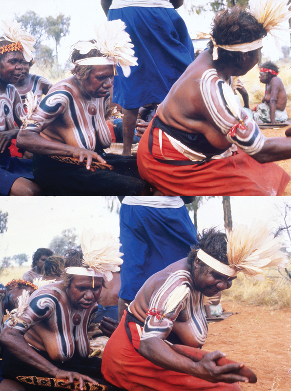 A year after the public yawulyu for the Ancestral Fire Dreaming in Adelaide, seven women from Yuendumu travelled 1,600 kilometres to Kaltukatjara (Docker River) to participate in a large initiation ceremonial cycle performed by both men and women separately called Kajirri (see Dussart 2000, 169–176; Glowczewski 2016, 246). Before their departure and following a set of conflicts I have discussed elsewhere (Dussart 2000, 166–168), Judy and Dolly were planning to connect the stories of their Ancestral Fire Dreaming that had travelled to Kaltukatjara with those of women from that region. A couple of days after our arrival for the ceremonies at Kaltukatjara, Dolly and Judy decided not to perform the Ancestral Fire Dreaming as it was not a Dreaming itinerary shared by most women in attendance. Instead, Dolly and Judy decided to dance recently revealed stories about Ancestral Emus who travelled and shaped many territories and sites shared by most (see Dussart 2000). This was not a moment of ritual knowledge exchange but rather a realignment of performative priorities, declaring how the specific stories of the travels of the Ancestral Emus were all connected without the traditional transfer of the performative rights of ritual production from the performers to the viewers. Such ceremonial decisions were aligned at the time with the production of encompassing relatedness among Indigenous people residing in Central and South Australia (see also Myers 1986; Peterson 2000). They are also moments when viewers are witnessing and reaffirming the legitimate right of the performers to perform (see Peterson, Chapter 3, this volume).