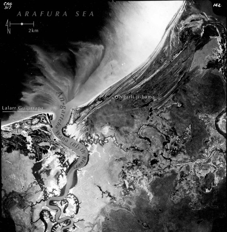 The land owned by the An-barra has been described in detail by Meehan (1982a). In brief, after An-gartcha Wana leaves the escarpment, it flows across savanna plains through dry Eucalyptus tetradonta woodland. Within 40 km of its mouth, it joins the Cadell River and becomes tidal and brackish. The coast is a soft shore with sandy mudflats and little or no offshore reefs. This environment limits the diversity of shellfish species available. The land surrounding this area supports a mosaic of productive habitats, including freshwater wetlands, mangroves, monsoon rainforest and pandanus groves (Map 2.2; Meehan 1982a, 10–12).